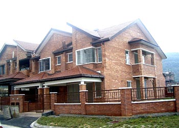 Kitchen and bathrooms with ceramic tiles. Facing brick