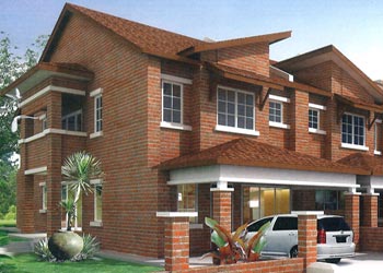 Kitchen and bathrooms with ceramic tiles. Facing brick